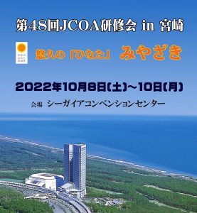 2022年3月18日 / 最終更新日時 : 2022年3月18日 sakurajcoa 会員向け 第48回 JCOA研修会 in 宮崎・悠久の「ひなた」みやざき 2022年10月8日~10日 第48回 JCOA研修会 in 宮崎・悠久の「ひなた」みやざき が開催されます。